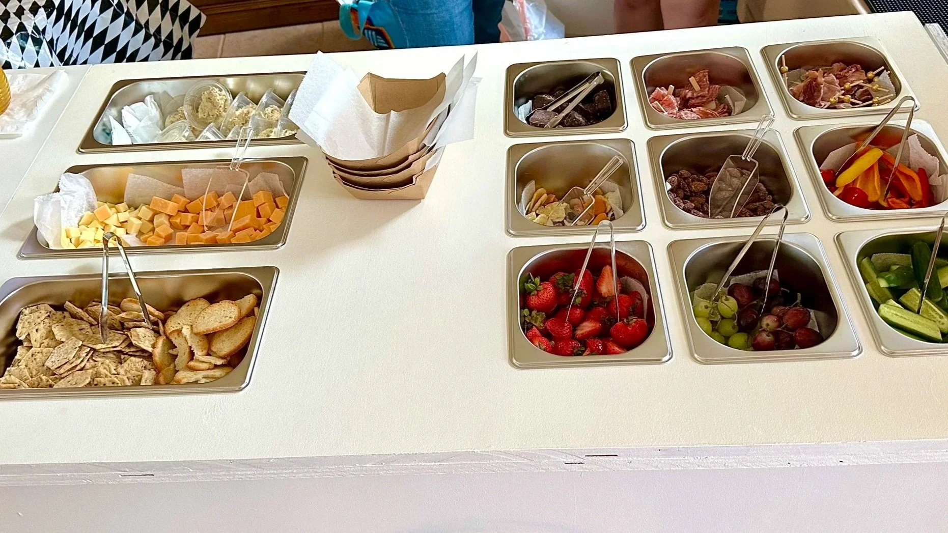 Some savory options include an egg bites breakfast bar, elote bar, a walking taco bar, and a panini bar.